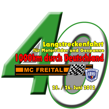 Der Start erfolgt dieses Jahr wieder in Freital. Mitfahren kann durch die kürzeste Nacht des Jahres jede und jeder Motorradfahrerin oder Motorradfahrer der ein zugelassenes Motorrad besitzt. Dabei spielt es keine Rolle ob das Fahrzeug ein Tourer, Enduro, Supersportler, Sporttourer, Naked Bike, Streetfighter, Gespann oder Quad ist. Gestartet wird in verschiedenen Klassen. Vorgegeben sind die Kontrollorte und die Zwangspause. Den Weg dorthin wählt jeder selbst. Eine Wertung kommt durch Aufgaben an den Kontrollorten zustande. Wer mehr über diese Veranstaltung mit ihrem eigenen Flair erfahren will, wendet sich an: Erlebt es selbst! Das immer wieder kleine oder auch große Abenteuer für jeden Motorradfahrer unter dem Motto "... und immer wieder 1000km" Achtung! Veranstaltung mit Suchtgefahr! Teilnahmebedingungen und Erklärungen:Gefragt sind hier aber nicht Sportler mit Lizenz oder Spezialfahrzeugen. Nein! Es reichen Serienmaschinen und die müssen zugelassen sein! Das Abenteuer liegt bei der Distanz!1000 Kilometer werden von den Teilnehmern durch Deutschland in nur 24 Stunden gefahren. Eine Zwangspause garantiert die Fitness der Teilnehmer. Ungefähr 15 Kontrollstellen gibt es auf der ganzen Tour! An diesen Kontrollenstellen finden Wertungsprüfungen statt, die von jedem Motorradfahren zu erfahren, lösen oder zu beantworten sind! Nicht der erste im Ziel ist der Sieger! Sondern der mit den wenigsten Fehlern, der kürzesten Zeit bei den motorsportlichen Prüfungen und der die Zeit von 24 Stunden nicht überschreitet. Zwischen den Kontrollstellen sucht jeder selbst den Weg! Dies ist eine Breitensportveranstaltung des MC Freital! In der Vergangenheit nahmen immer um die 80 FahrerInnen daran teil. Technische Daten:1000 km durch Deutschland für Motorräder und Gespanne