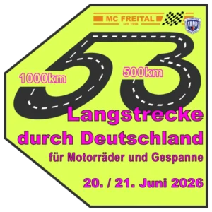 | 20./21. Juni | ADMV-Langstrecke „1000km durch Deutschland“ – MC Freital | ADMV, SM (nur 500 km) |